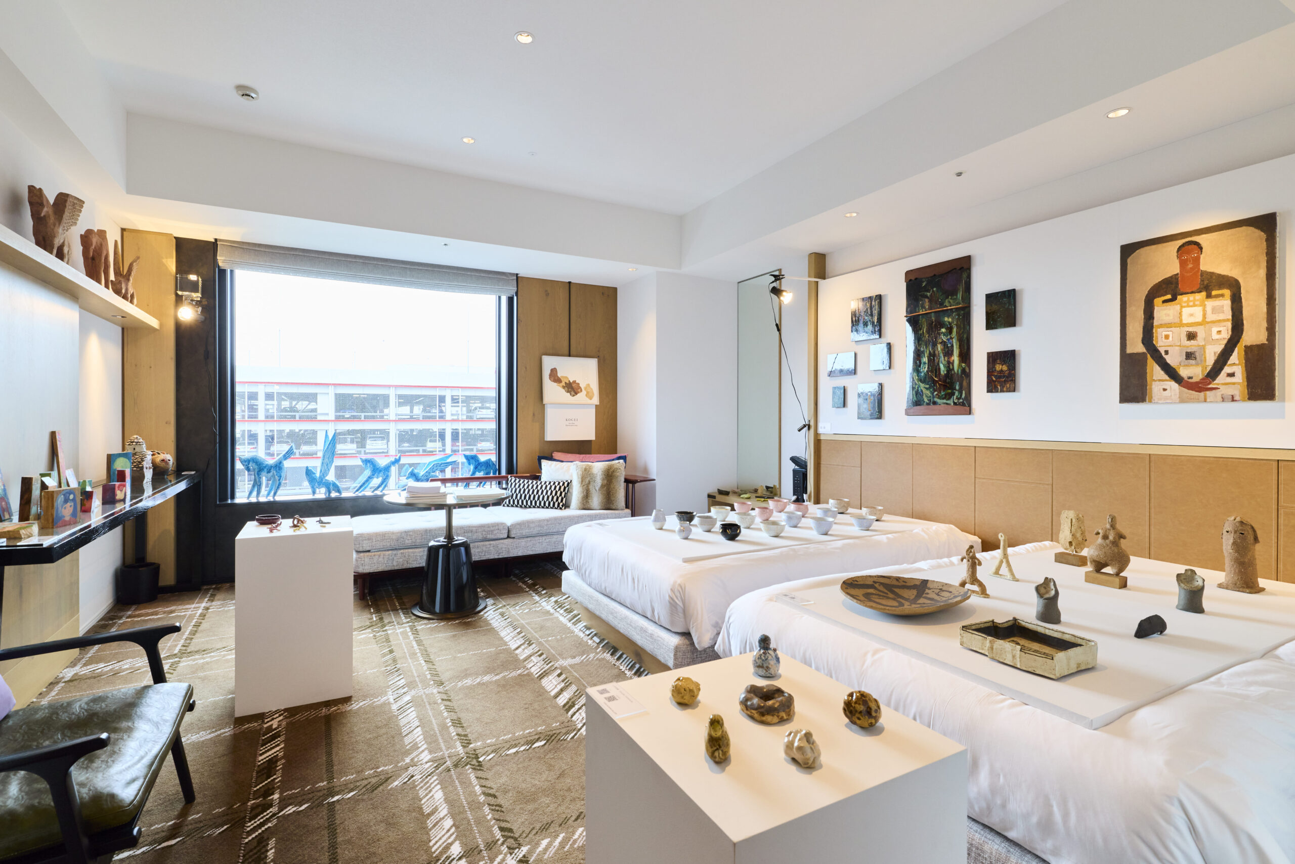 今年で記念すべき10回目をむかえる本アートフェアは、2017年に始まり、以降毎年1回開催しています。来場者数や販売額、出品作家ともに年々増加、2025年は国内外42ギャラリー(日本39、海外3)が出展し、アーティスト約210名の作品を展示販売いたしました。より暮らしに近い空間の中で作品をご覧いただけるよう、ホテルの客室で展示をしています。1部屋1ギャラリーでの展示のため、部屋を変わるごとに異なる世界観の作品に出合えます。また、昨年度の会場内には選りすぐりの工芸品で軽飲食を楽しんでいただけるラウンジスペースを設置し、作家や来場者が交流する場を創出しました。公式HPやSNSにて出展ギャラリーやイベント内容など、情報更新次第お知らせいたします。今年もどうぞご期待ください。