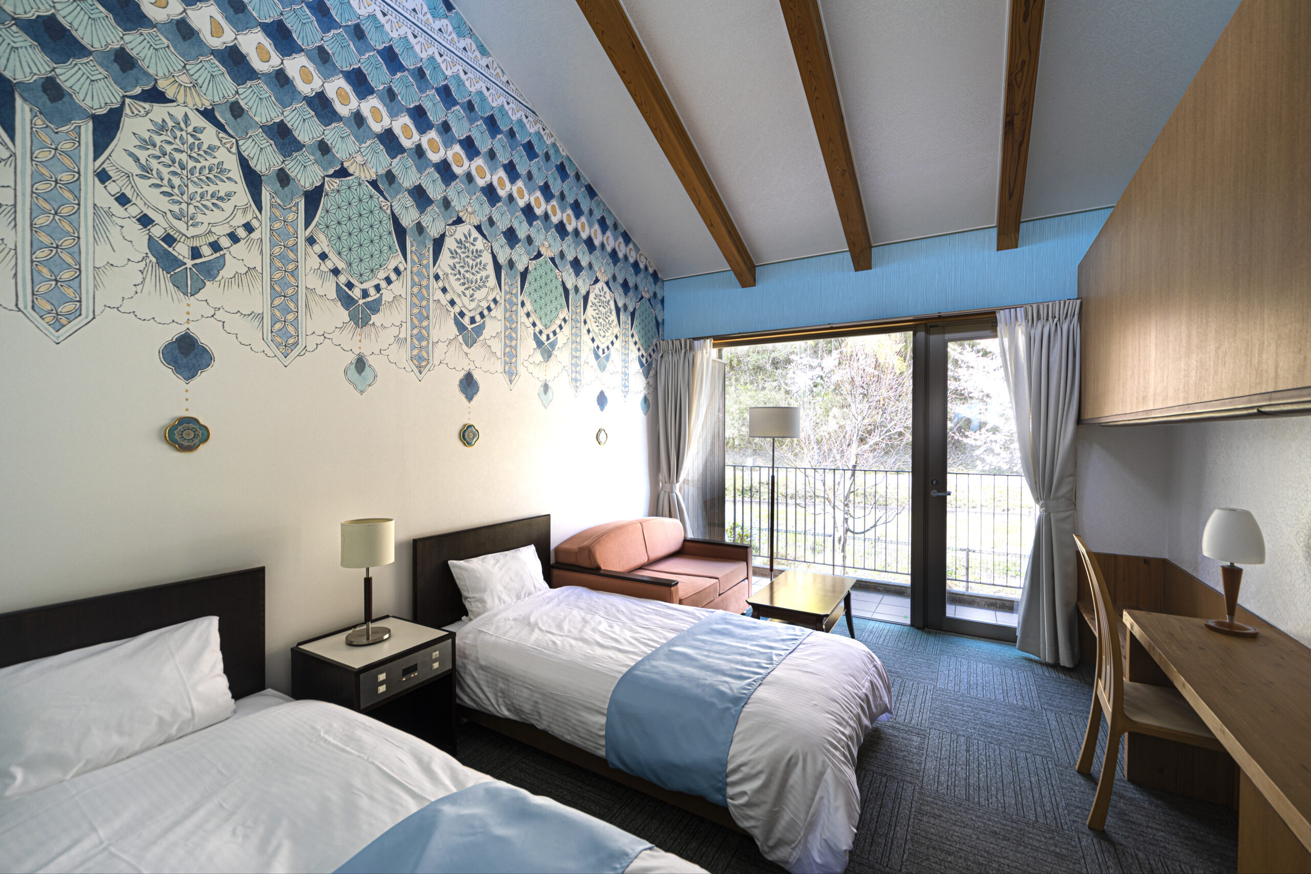 能美市が運営する研修施設「能美市ふるさと交流研修センター」が、指定管理によって「ウェルネスハウスSARAI」としてリニューアルオープンを迎えました。そのリニューアルに伴い、能美市にゆかりある8名の若手九谷焼作家が1室ずつをプロデュースする「九谷ステイ」を構想。弊社では作家選定から客室およびエントランスホールのアートディレクションと作品の制作・設置監理を担当しました。客室や施設内でアートを楽しめる宿泊施設が増えつつある一方で、「焼き物」に焦点を当てた試みは国内でも珍しい実績となりました。