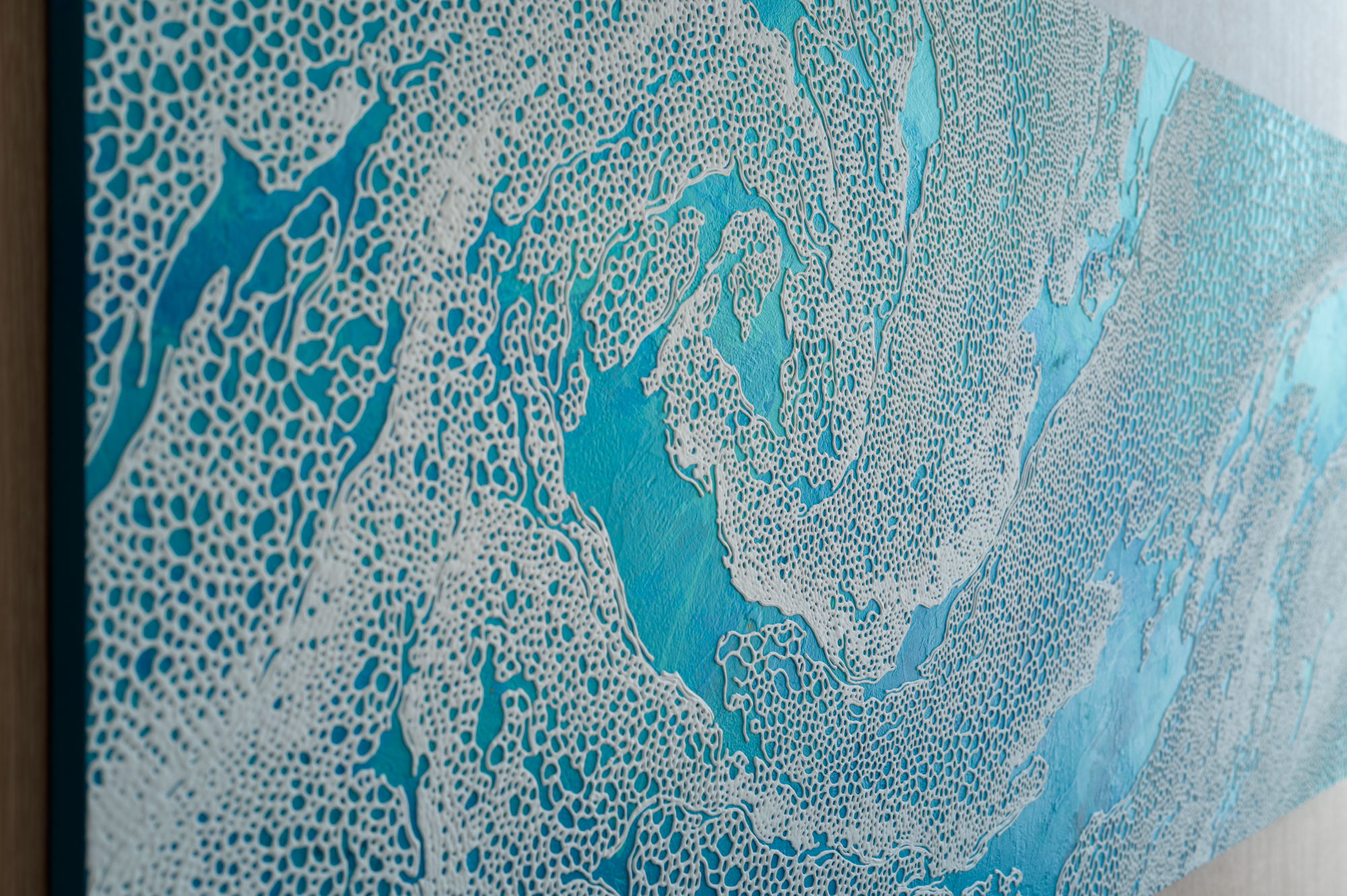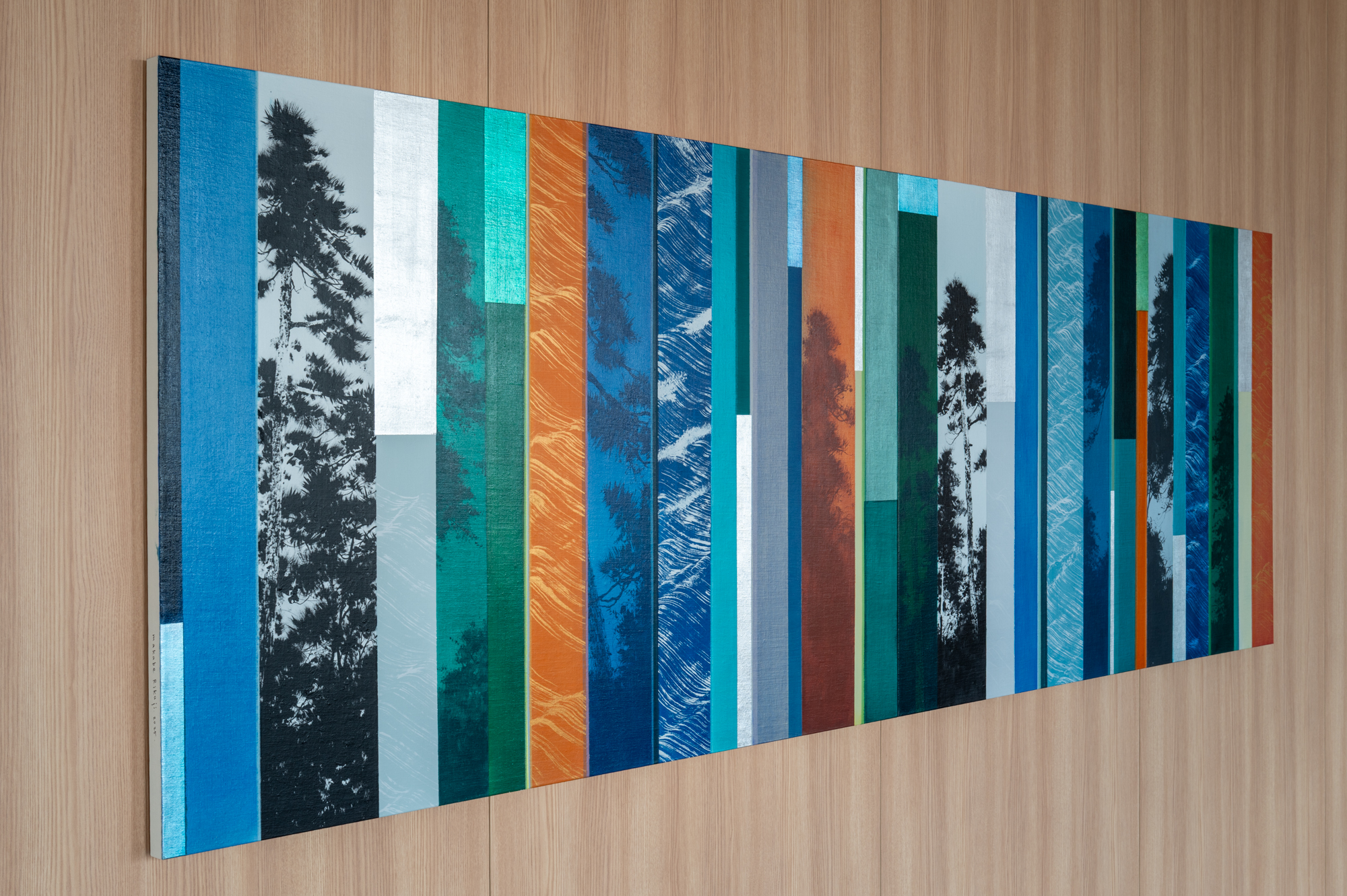 シブヤ精機の本社が浜松市内で移転することになり、その新本社工場にてコミッションワークを納品しました。シブヤ精機の先端的な取り組みを象徴するように、企業の理念「共に創る」精神を基点に、人間にとって欠かすことのできない「食」を生み出す4つの要素を抽出(水/木(森)/農/技術)をキーワードにしてキュレーションをしました。3名による合計6点の作品をお納めしました。弊社では、企画提案からキュレーション、作品の制作・設置監理まで一貫して実施しました。